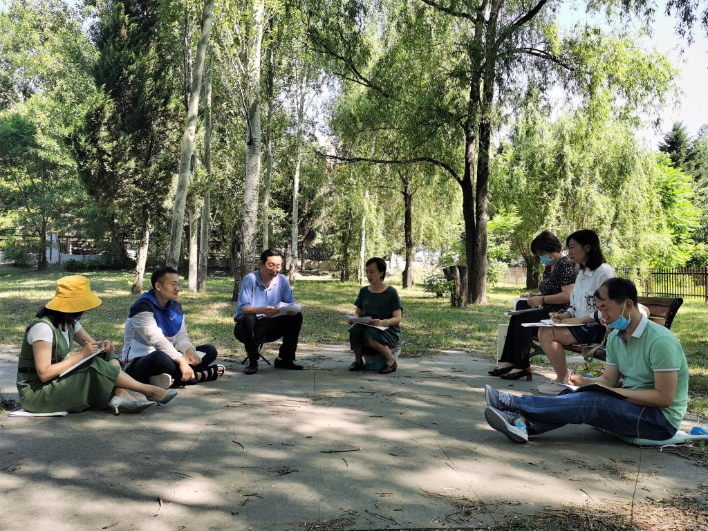加强师德与学风建设工作方案》和学校下发的《关于召开“七一”专题组织生活会和开展“党课开讲啦”活动的通知》进行了研究学习,结合学院会议场所紧张的情况,策划了本次室外专题活动。