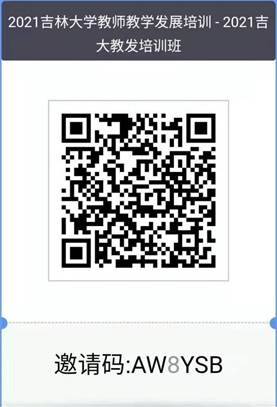 微信搜索“雨课堂”输入班级邀请码:AW8YSB,或者直接扫描二维码,进入吉大2021教发培训班,课程支持随时回看。