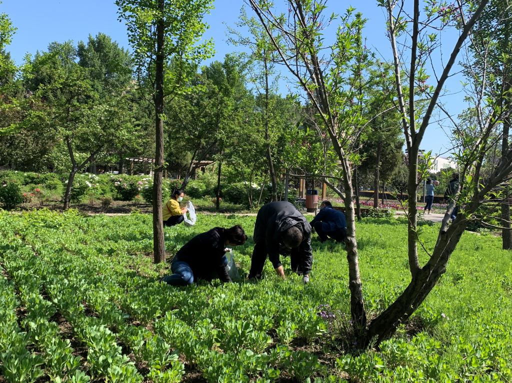 本次除草活动选定在草本植物“八宝”的种植区。该区野草丛生,已经严重影响原绿化景观。党员们手拿垃圾袋,边拔草边清理。劳动中大家辨认着草木种类,学习草木的生长习性,分享各自养花经验,观察土地里蚂蚁分布和蚯蚓出没……