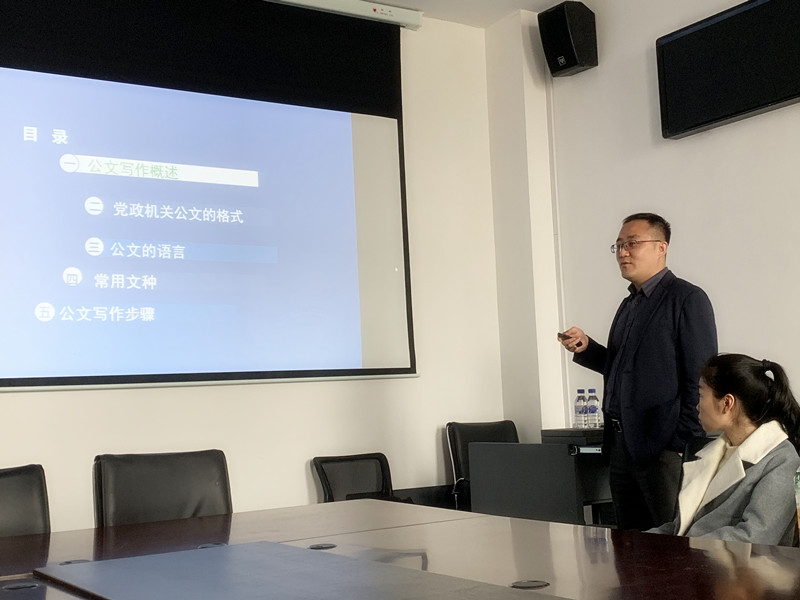 冯浩培训的题目是“规范公文处理工作,提高公文写作能力”。围绕着公文写作概述、党政机关公文的格式、公文的语言、常用文种、公文写作步骤5个方面,冯浩结合相应的文件法规和具体案例进行了重点突出、生动形象的讲解。参加培训的人员对不同公文的概念和撰写要求有了充分的领会,对处理公文方面时需要注意的问题有了直观的认识。