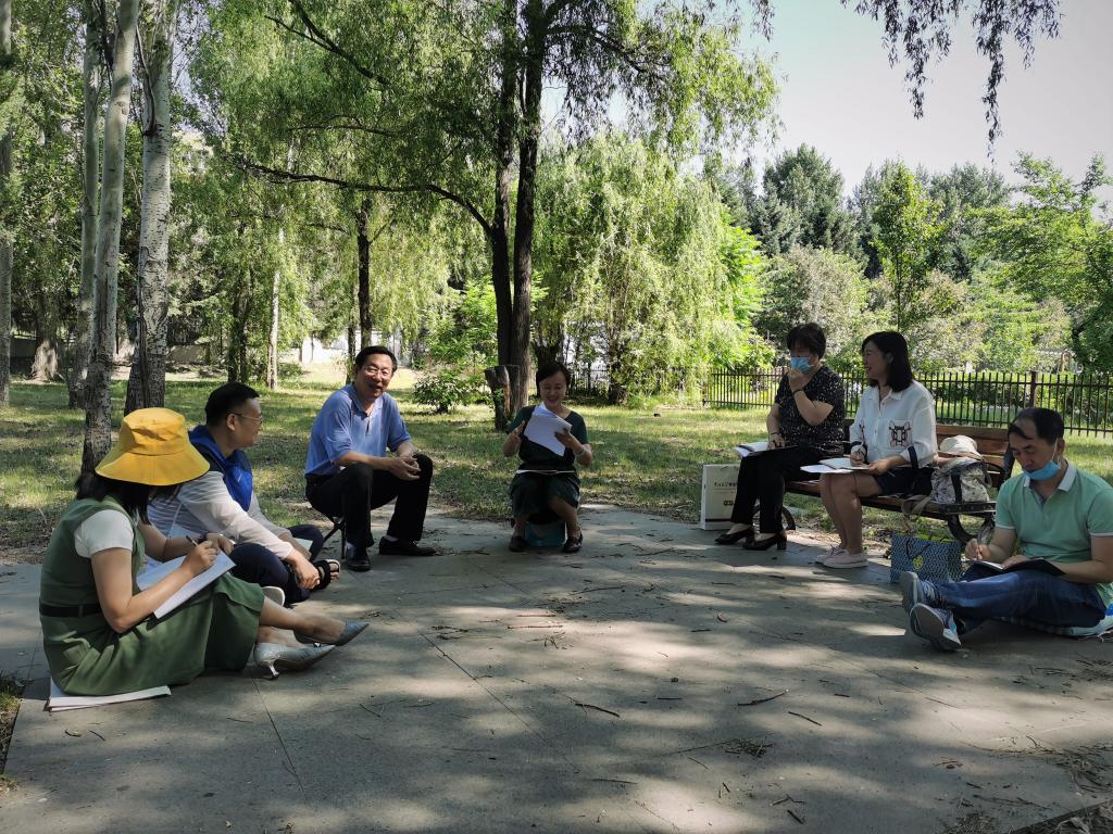 加强师德与学风建设工作方案》和学校下发的《关于召开“七一”专题组织生活会和开展“党课开讲啦”活动的通知》进行了研究学习,结合学院会议场所紧张的情况,策划了本次室外专题活动。