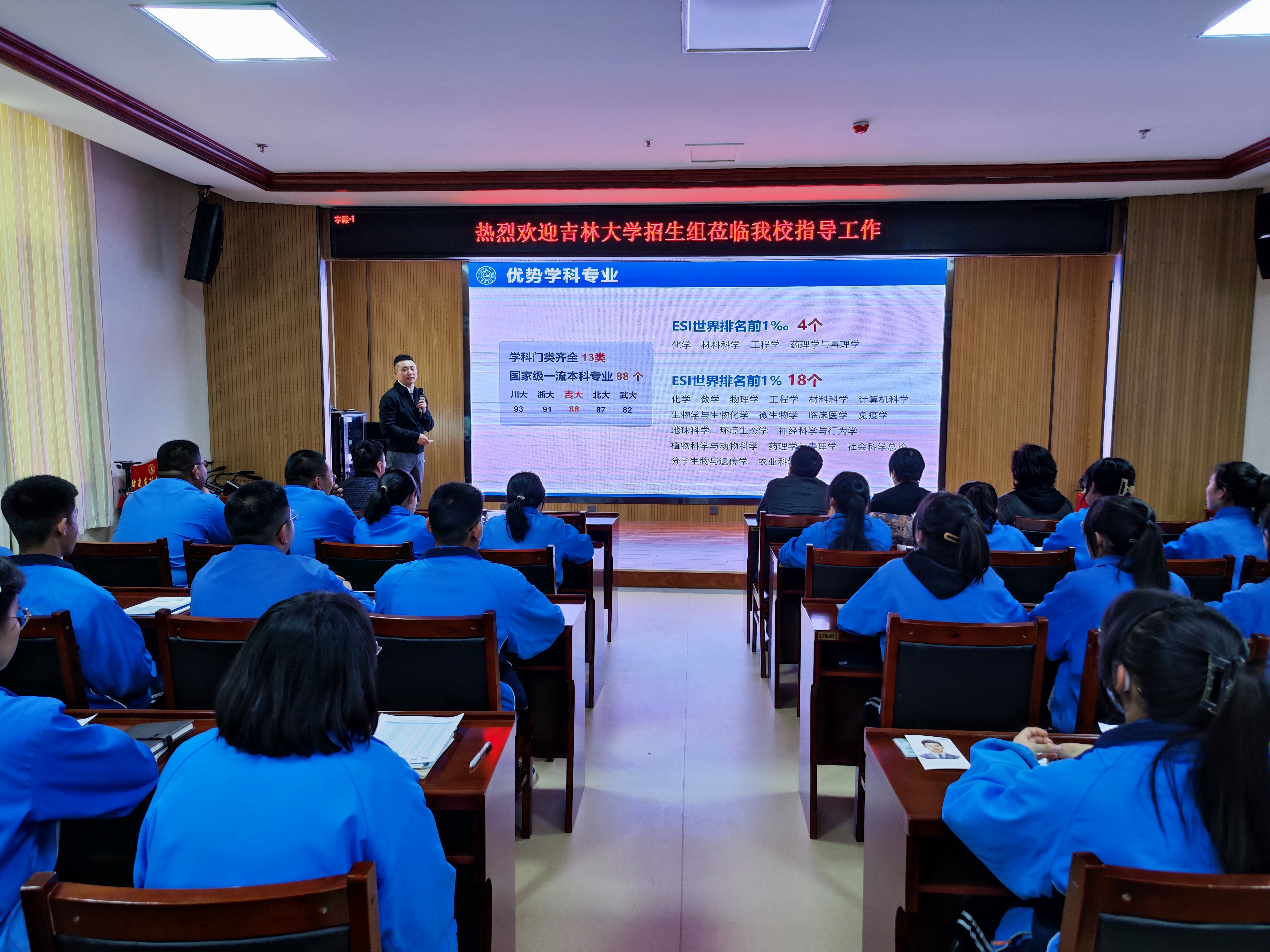 文博遗产系博士生导师胡卫军教授以“筑梦启航在吉大”为题向张掖中学高三年级学生讲述了吉林大学的发展历史、专业建设、学科优势、办学传统等学生们关注关心的内容。文博遗产系主任吕军教授与学生互动交流,对学生感兴趣的专业、招生政策等问题进行了答疑解惑。
