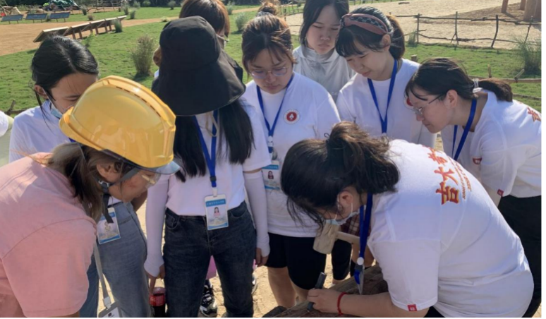 耿默兰同学在良渚遗址和同学们进行实验考古项目培训