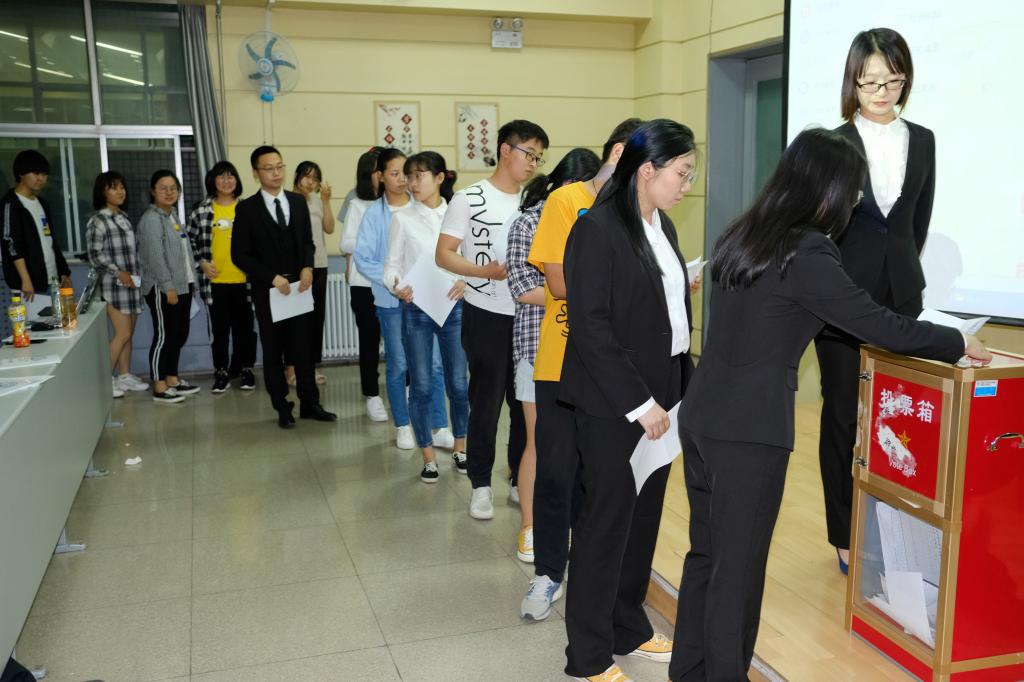 随后,各位团学组织竞选人上台述职,台下的老师及同学们认真聆听。答辩过程中,竞选者们以最饱满的精神状态向与会人员讲述了自己所参与开展的活动、取得的成就并表达了自身对学生工作的热爱及对未来工作的期许。随后,总监票人吴天聪主持了接下来的投票环节。此次选举采取无记名投票的方法,差额选举出高千娇、耿默兰、刘锡甜等15位同学,与上届留任委员毕桐馨、李明轩、连胜男组成了18人的重庆时时彩