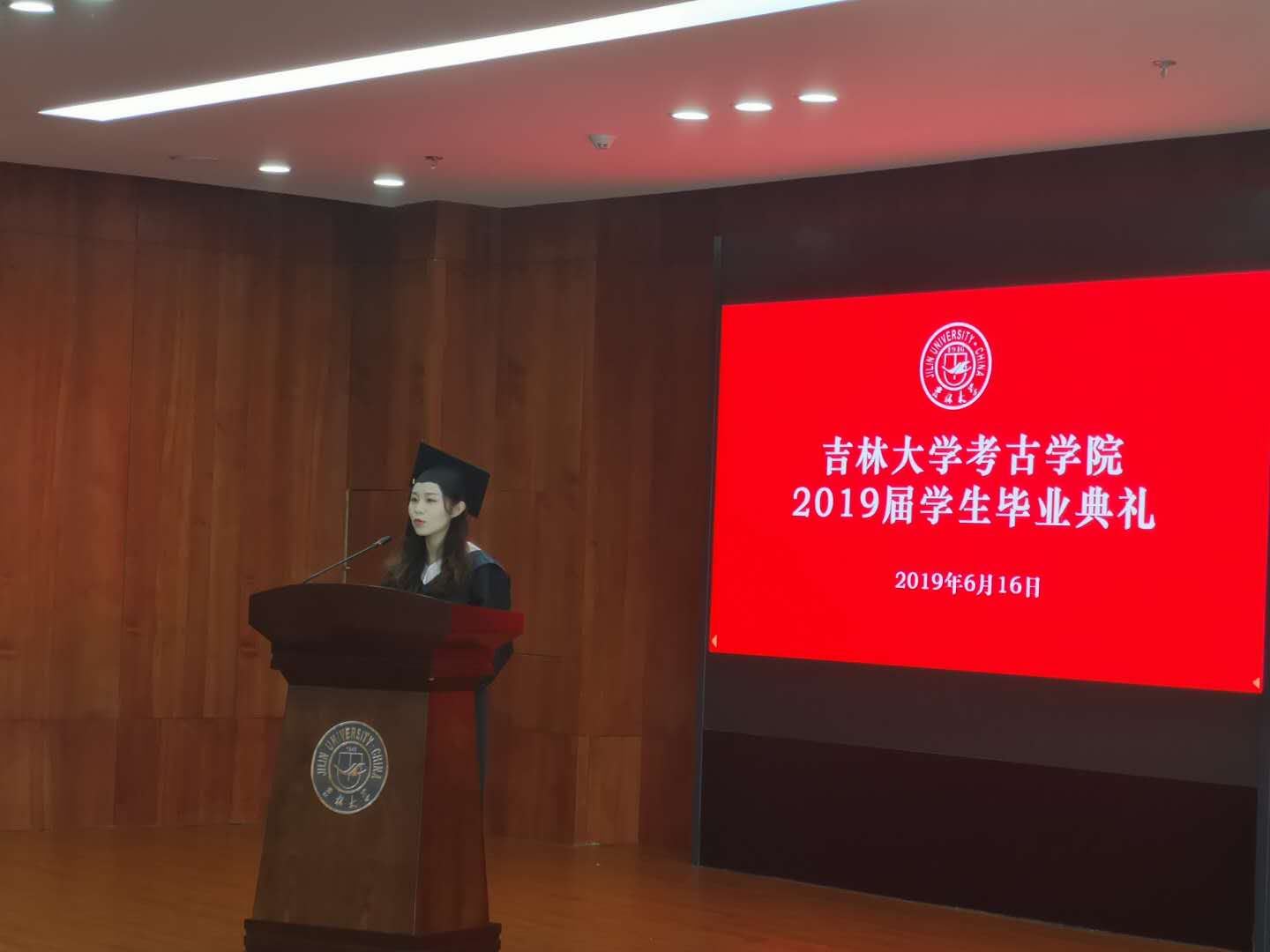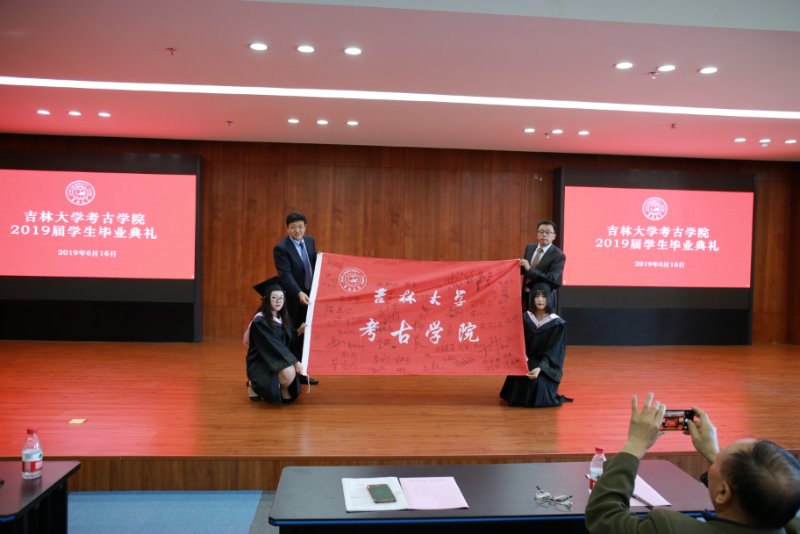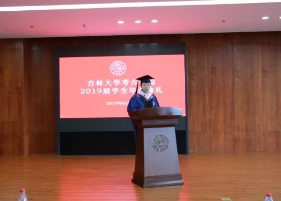 2015级考古班李萌同学作为本科毕业生代表发言,她在感恩母校的同时以时间为轴,结合自身经历,用细腻温柔的语言回忆了4年美好校园生活的点滴;吉林大学2019年度“十佳研究生”获得者张力月同学代表研究生感谢学院老师的悉心教导,介绍了自己报效祖国,支边西部基层的感人经历,并针对学科特点和全体毕业生分享了在实践中不断积累经验的心得体会。