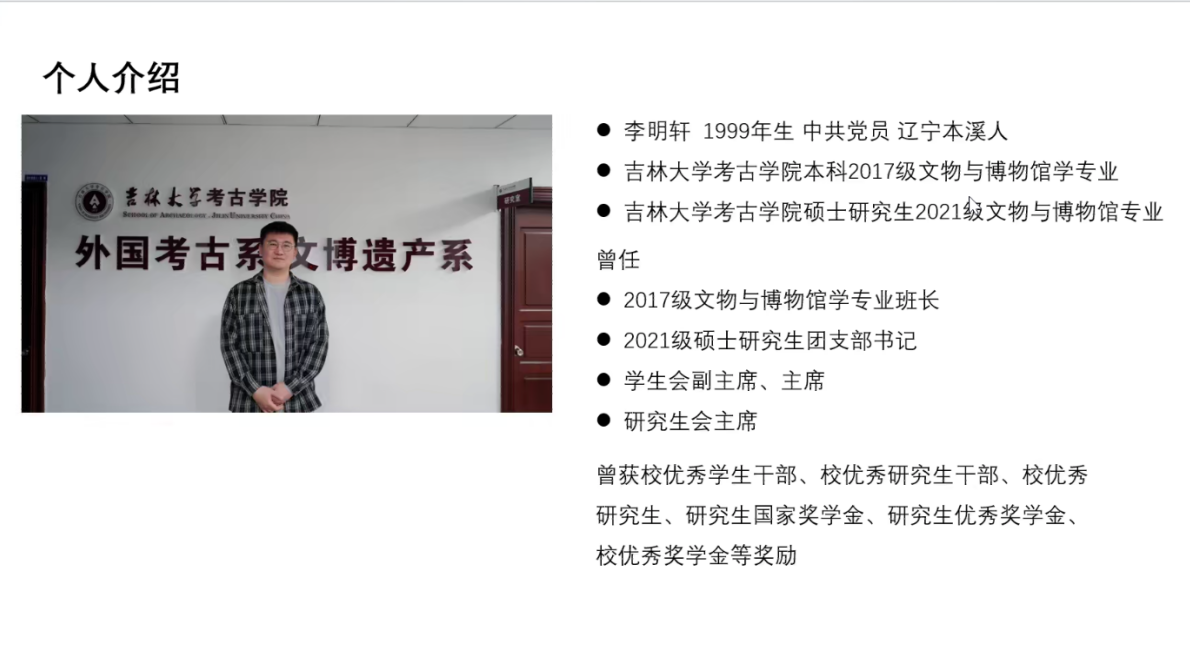 本次就业分享交流会分别邀请了2020级文物与博物馆学本科生李凡、2021级考古学硕士研究生连胜男、2020级文物与博物馆硕士研究生王泽卉以及2021级文物与博物馆硕士研究生李明轩分享他们的就业经验,他们就定向选调、公务员招考、事业编考试等多方面进行了分享。