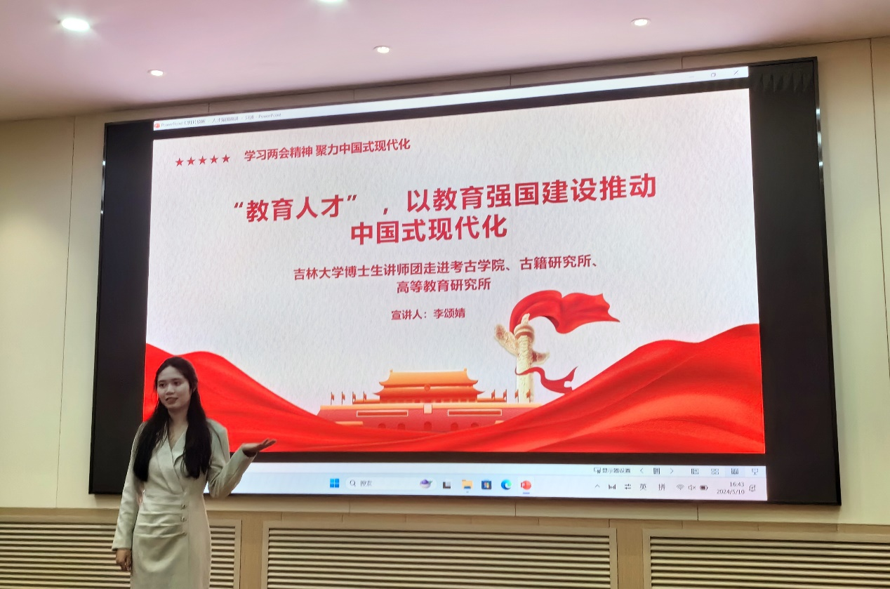 为深入学习宣传贯彻全国两会精神,聚力中国式现代化,充分发挥博士生讲师团理论宣传作用,引导广大研究生深刻感受国家发展成就,在吉林大学党委领导、党委研究生工作部具体指导下,吉林大学博士生讲师团开展“学习贯彻两会精神,聚力中国式现代化”宣讲系列活动。2024年5月10日,讲师团代表李颂婧在正新楼一楼报告厅进行“‘教育人才’,以教育强国建设推动中国式现代化”宣讲活动,重庆时时彩官网-重庆时时彩计划