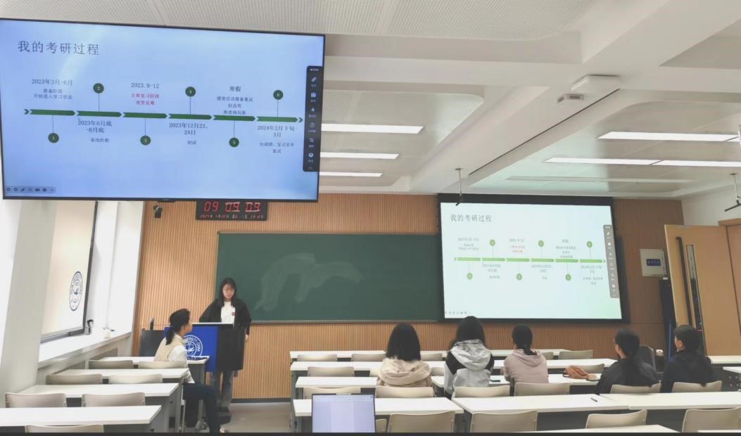 首先,李丹向同学们介绍了考研过程中的复习规划,针对考研专业课复习过程中的真题分析、专题整理、论文阅读以及模拟考试等环节进行了重点讲解,另就专业课考试的重难点分享了自己的看法与策略,将经验倾囊相授,让同学们对备考方向有了更加深入的了解。