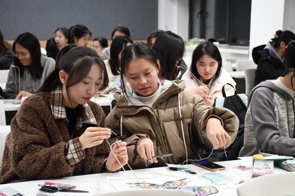 “这个骨架该怎么扎呀”“请问这里要留多少厘米呀”“我们组差不多啦!”……在大家和文保协会的成员们的共同努力下,25只风筝在一个多小时之后大功告成。教室里的欢声笑语此起彼伏,保护文化遗产意识的种子也种进每一位同学心间。