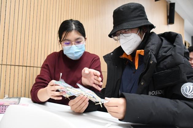 “北国风光,千里冰封,万里雪飘。”十一月的吉大,室外已经是一片冰天雪地。呼啸的寒风不能抵挡同学们对文物保护、文化遗产的热情。不到七点,教室里就坐满了来参加活动的同学们。大家按照要求两两分组,在工作人员帮助下领取了制作风筝需要的材料,摩拳擦掌,迫不及待地等待活动开始。