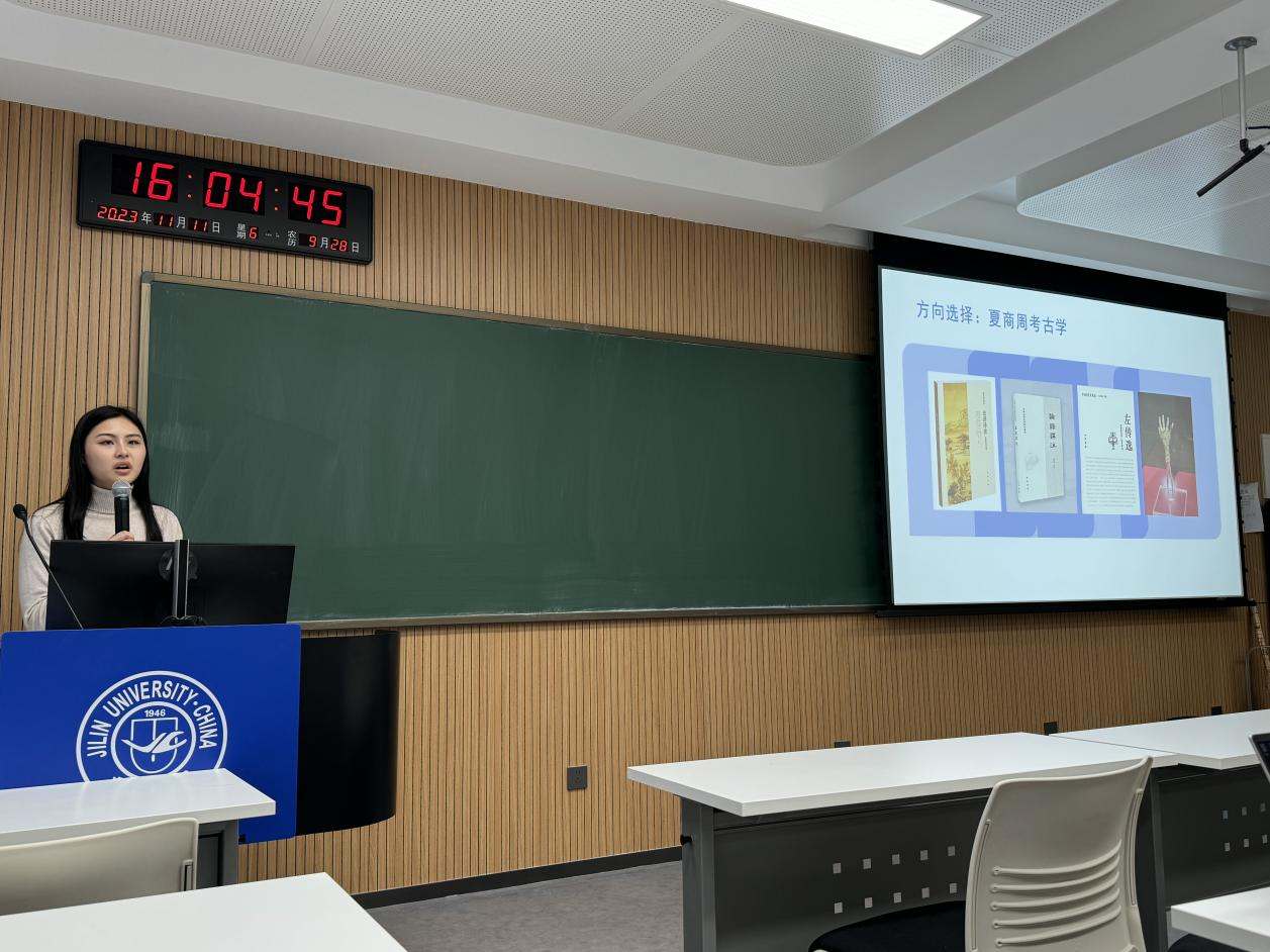随后,保研至本校的徐子姣、吴东航同学进行了分享。徐子姣结合自身学习经历与心路历程,强调了工地实习和保持良好心态的重要性,她真诚的分享不仅使同学们对保研的时间线、准备工作有了进一步认识,也更加彰显了考古学的学科魅力。吴东航同学围绕对考研概念的解析,结合个人报考经验、复试经验,为同学们提出了普适性的建议。