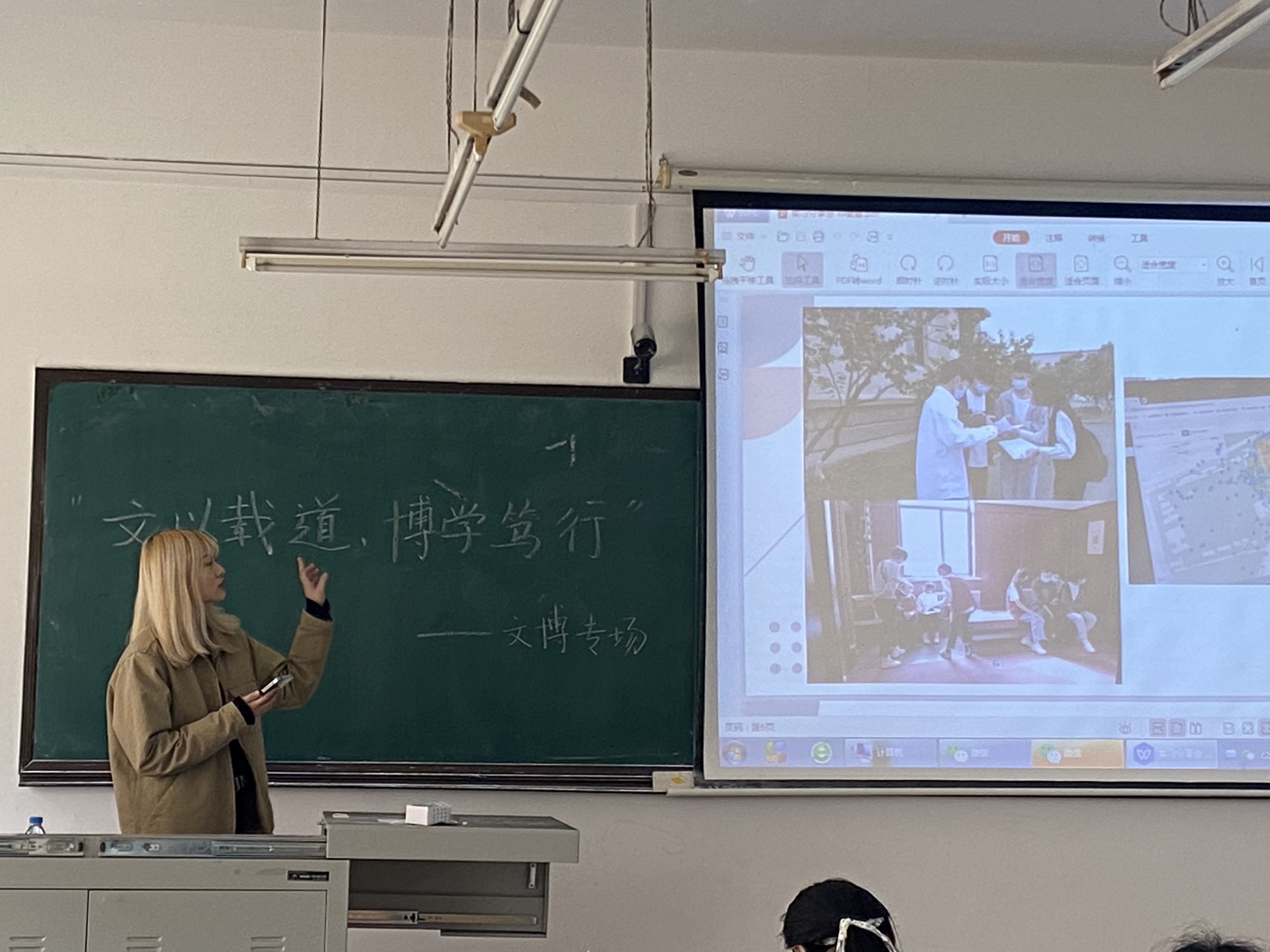 方旭同学向大家介绍了遗产地调研和博物馆实习的流程及相关任务要求,并以伪满皇宫博物院为例,阐述了博物馆内各部门的大致分工和实习期间同学们需要负责的具体任务。
