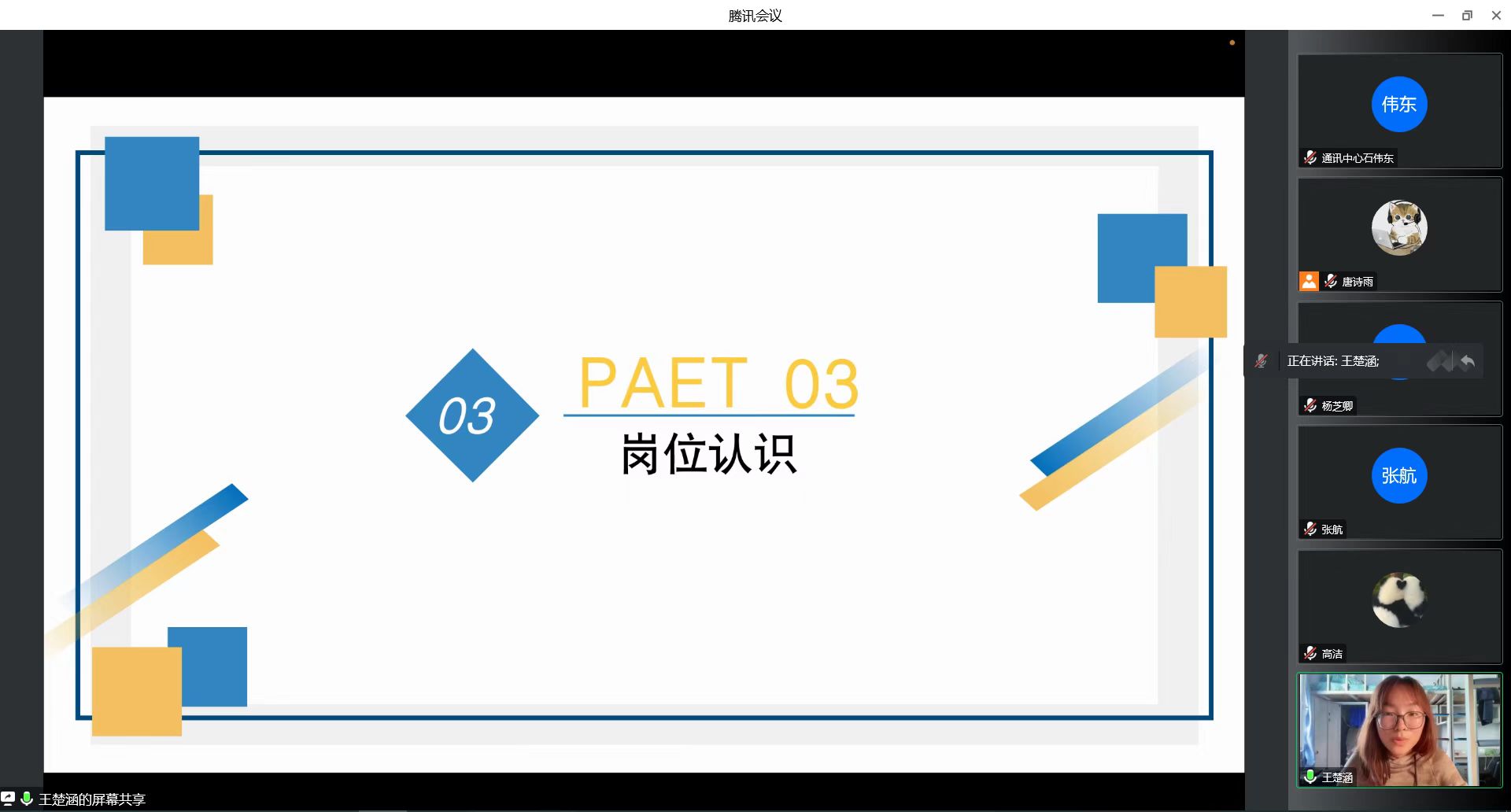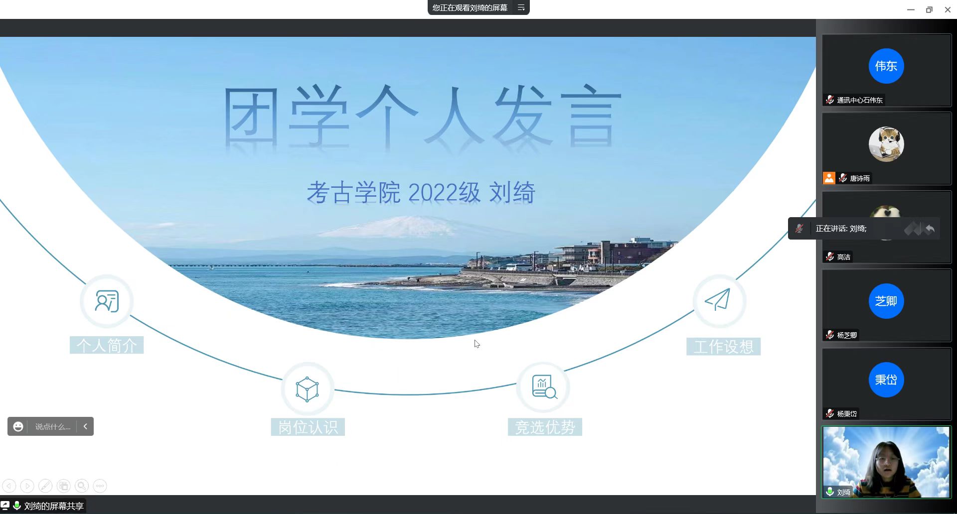 根据当前学校的相关防疫政策,本次纳新面试通过腾讯会议于线上举行 。为保障纳新过程顺利进行,团学组织相关负责人针对本年度报名情况制定出合理的考核方式和考核标准,向各纳新部门征集面试问题,并召开线上会议进行面试官培训。上午9时,参与面试的同学按照编号顺序,依次进入等候室和会议室进行面试。本次面试分为自我介绍和个人答辩两个环节。参加的同学首先通过PPT等形式,分别从个人简介、岗位认识、竞选优势、工作设想等方面进行时长三分钟的竞选演讲。在此环节中,每位同学都充分展示了自己在性格、能力、工作经验等方面的竞选优势,不吝表达了对所报名的职务的工作任务的设想与规划,尽显为学院奉献、为同学服务的决心和对后续工作的展望。在随后的个人答辩环节,面试官结合同学们的自我陈述内容和竞选岗位的工作内容及特点,向同学们有针对性地提出了一些问题,引导同学们重新思考工作与学习的关系、协同工作的意义等关键问题。通过时长一分钟的答辩,面试官进一步加深了对竞选者的了解,同学们也对团学组织有了更深刻的认识。整个面试流程中,应试同学和面试官紧密配合,每位同学之间衔接有序,共同取得了良好效果。中午12时30分,纳新面试圆满结束。
