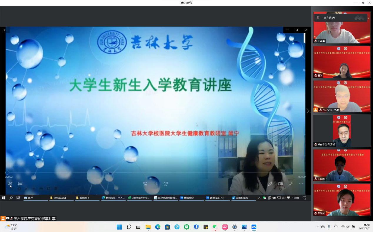 聆听完李老师对校图书馆的讲解后,同学们继续观看了由校医院大学生健康教育教研室闻宁老师所录制的《大学生新生入学教育讲座》,视频不仅介绍了大学生健康教育课程的相关内容,也为同学们普及了医疗证、社保卡以及校医院报销制度的相关知识,为同学们未来可能的就医需求提供了行动参考。此外,视频中还介绍了关于新冠肺炎、结核病、艾滋病、乙肝、水痘等传染病的传播途径及防控措施的相关要求,闻老师建议同学们减少到人员密集场所活动,保持健康行为习惯,及时进行室内通风,使用七步健康洗手法。此次宣讲不仅丰富了大一学生的卫生常识,而且在提高学生健康意识,提升学生身体素质和减少传染病传播等方面也有重要意义。