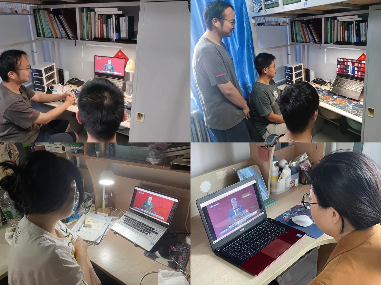 党委副书记兼副院长侯建峰、研究生秘书于歌老师与2022级全体新生共同观看了开学典礼直播。