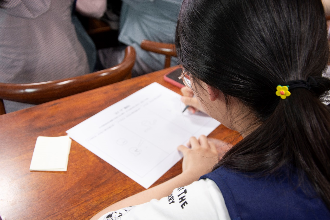 活动伊始,汤老师指出:实习过程中,学生心理一般会经历开始时兴奋、新奇、冲击的新鲜期,逐渐适应工作后的困扰期,接着进入充实、适应的融入期,实习结尾则是充满收获、留恋与解脱的告别期。在“压力调试”模块,汤老师结合视频使同学们全面认识压力的正反两面作用,并对如何识别和对待正常的压力反应作了讲解。随后,同学们通过现场扫码,填写压力知觉量表,自测压力。伴随着舒缓的音乐,大家在精心设计好的图纸中绘出或填写最近遇到的各种压力使其可视化,据以检测生活中的压力,评估自身的抗压能力。最后汤老师强调,压力是可控的,它来源于人的失控感与紧张感,同学们应当通过拉长时空维度、转换思维视角的方式对压力进行自我反思,并通过缓解紧张感的正念练习,克服压力所带来的消极影响,使其转化为我们前进的动力。