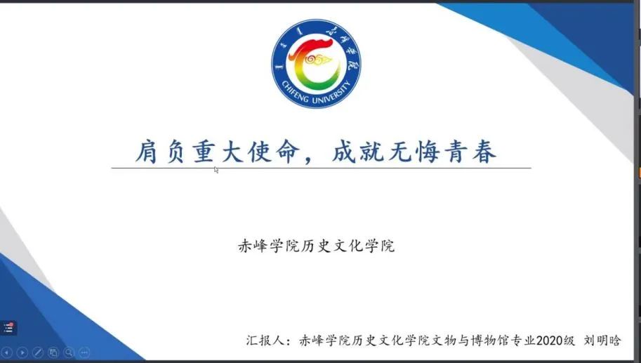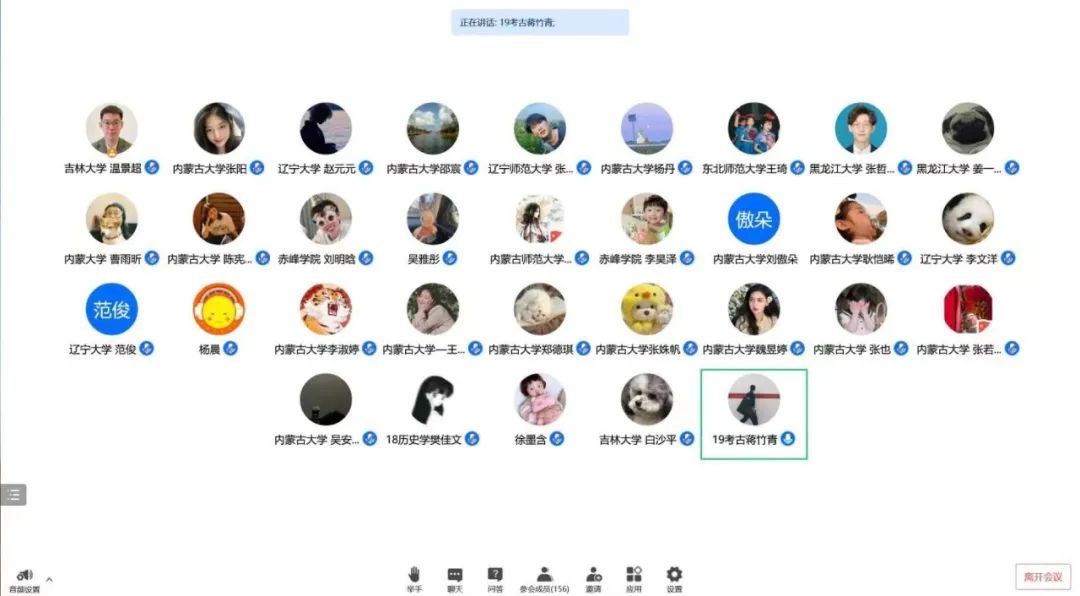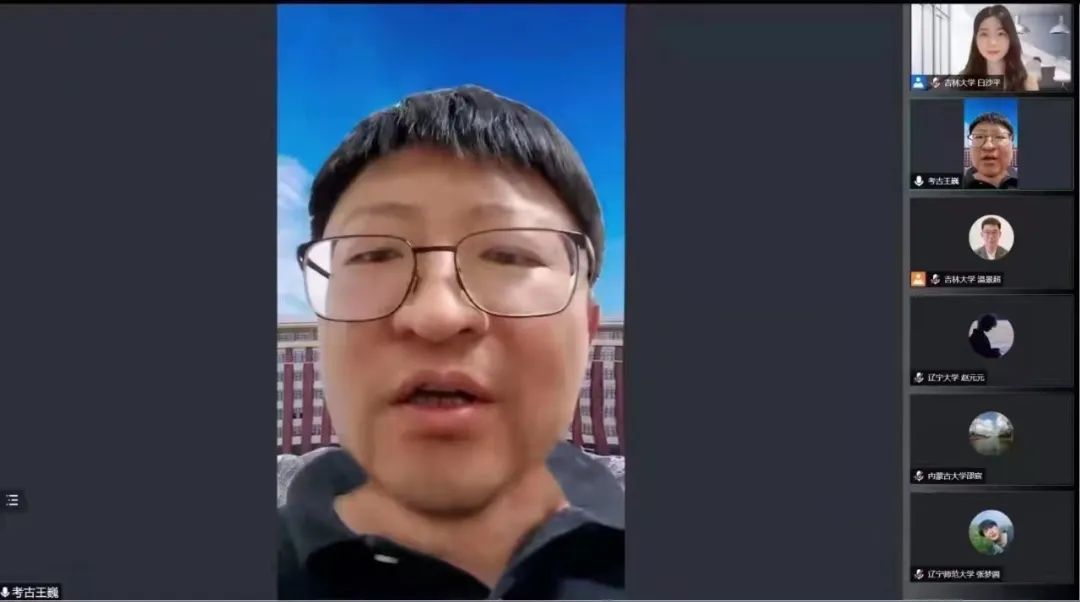 2019级本科生白沙平主持。活动伊始,与会嘉宾共同学习习近平总书记关于考古、文物工作的重要讲话和指示精神。来自赤峰学院历史文化学院的刘明晗、东北师范大学历史文化学院的吴雅彤、黑龙江大学历史文化旅游学院的姜一哲、辽宁大学考古文博学院的李文洋、辽宁师范大学历史文化旅游学院的张梦圆、内蒙古大学历史与旅游文化学院的曹雨昕、内蒙古师范大学历史文化学院的郑雅雯,结合本单位专业特色,依次分享了学习总书记关于考古文博事业发展的历次重要讲话及指示精神的心得与感悟。并围绕“青年的责任与担当”这一主题,分别作了新时代考古青年学子如何承担时代重任,树立文化自信,传承中华文化的主旨发言。