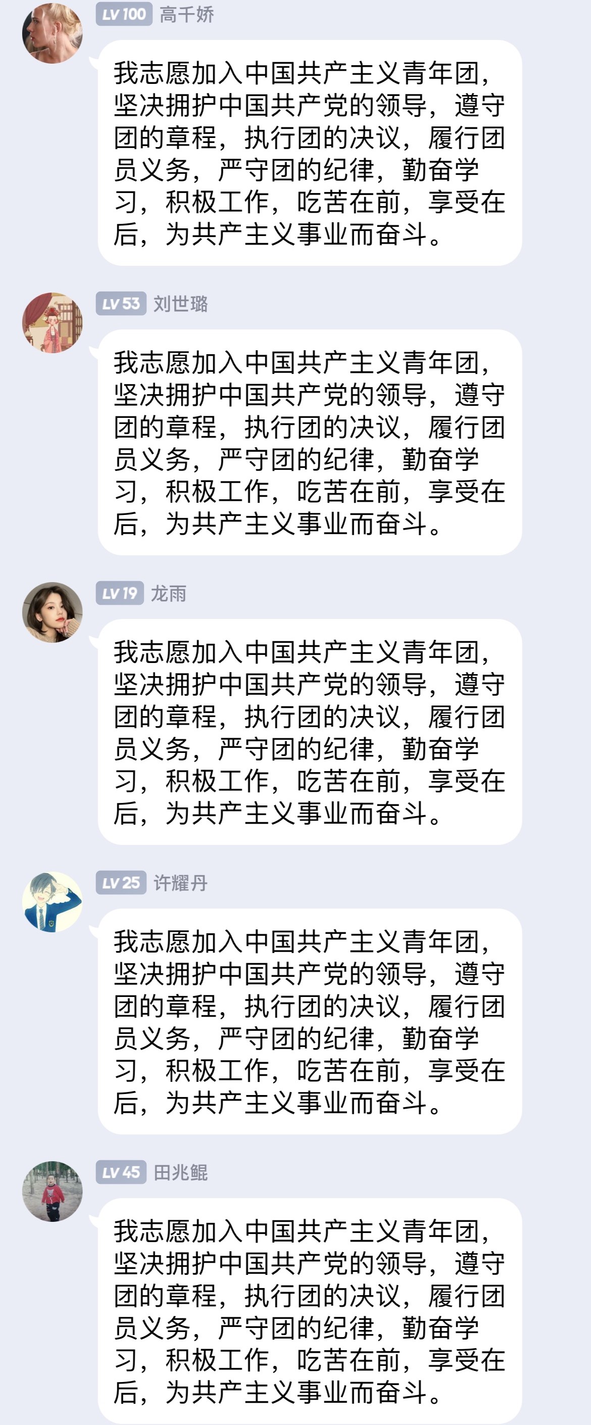 本科生各团支部开展了重温入团誓词主题活动。按照学校疫情防控要求,活动采取线上方式举办。全体本科生团员参加了本次活动。