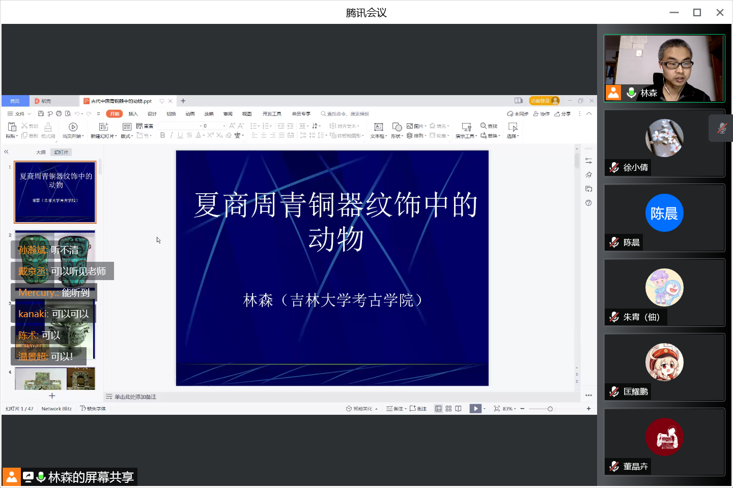 通过这次云学术活动,同学们对青铜器纹饰有了更深入的了解,也对当时动物形象的意义、古人的生活习惯产生了浓厚的兴趣。在静态管理状态下,同学一起学习青铜文明的发展历程,体验青铜器物的艺术之美和文化内涵,既是拓展视野,增长知识的契机,也是培育美感,陶冶情操的过程。相信同学们在此次欢乐“云”学术课堂中学有所乐,乐有所得,培养了良好的探索精神。