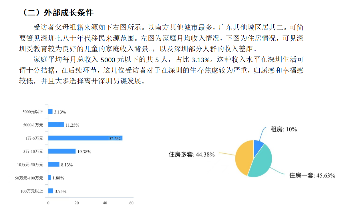 这份调查报告让黎宇菲更深入地了解了她的“深圳归属感”的来源,也让她意识到她的生存焦虑不仅仅是个体原因。最终,黎宇菲同学将这项调查发布在了网络上,也使更多人对深圳及深圳人的特质有了更深入的理解。