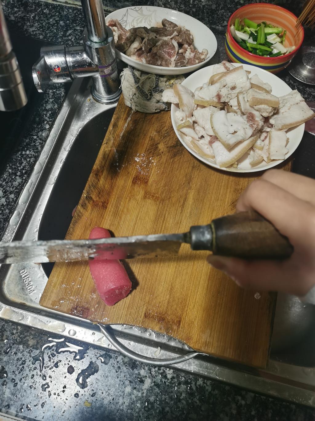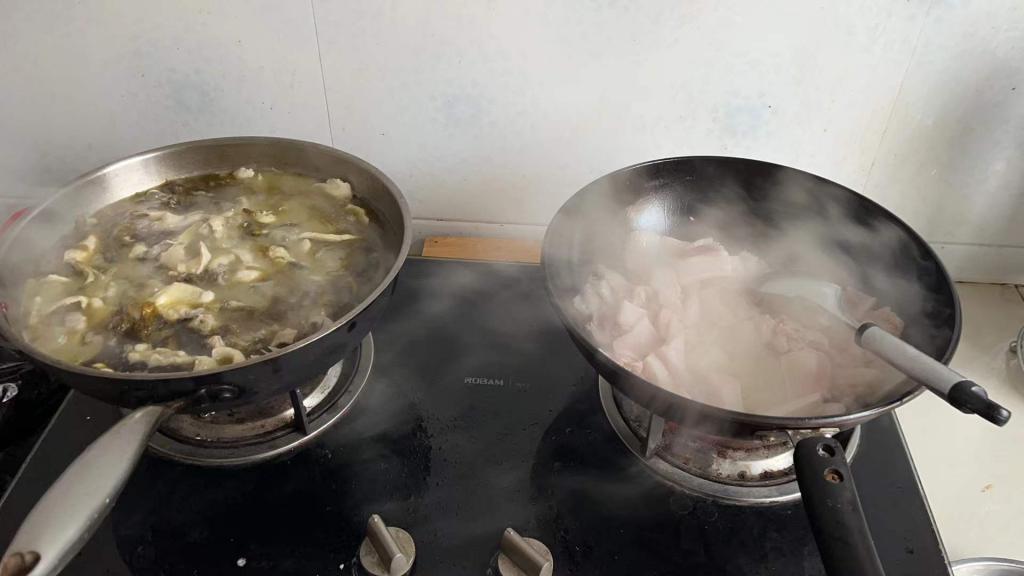以下是柴光进分享的酸菜白肉的备菜、下锅的过程——采用新鲜五花肉和煸炒过的酸菜放入砂锅慢炖,料酒生抽蚝油依次放入——就能得到一份用心制作的酸菜白肉:猪肉肥而不腻,酸菜入味儿可口。