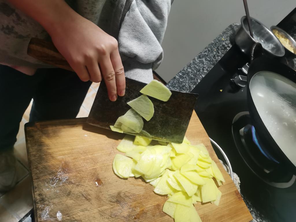 在这个寒假期间,于永越同学从肉末豌豆这一道最简单的菜开始学习烹饪,全部工序重点在于将食材与调料按顺序加入再翻炒。很轻松地完成了之后,他熟练地掌握了一些最基本的工具使用技巧。之后一段时间他在父母的指导下又尝试做过一些简单的菜肴。虽然是入门,但是于永越也确实提高了自己的生活技能。他认为接下来应当从练习切菜和处理食材做起,系统地学习烹饪技能。