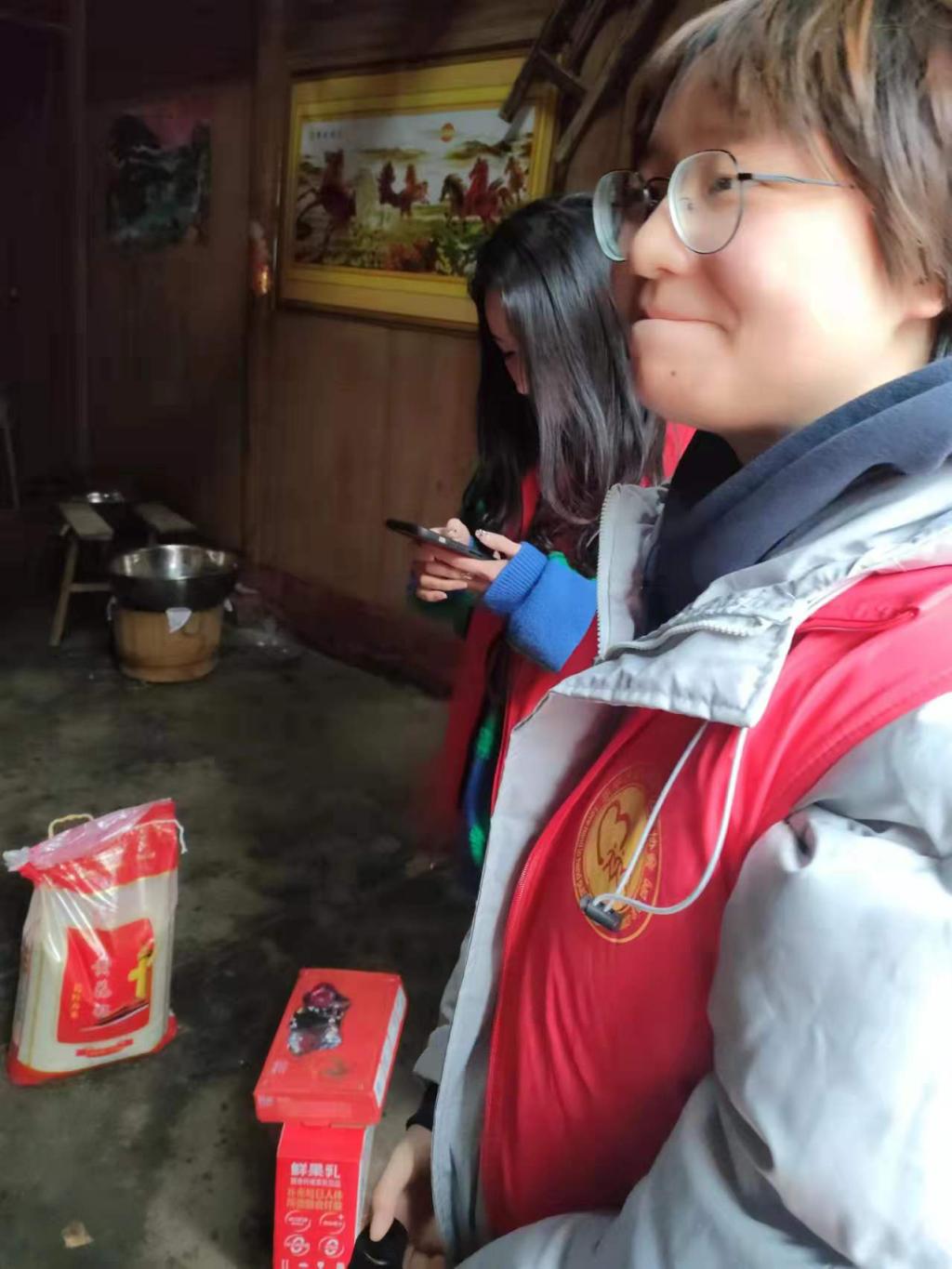 上午9点,她与协会成员们从江西省乐平市市政府出发,分成两个小组,分别前往双田镇、乐港镇、后港镇等乡镇走访部分贫困户。协会成员为贫困户准备了一些慰问品,有大米、食用油、纯牛奶、暖水袋等生活用品。一个小时后,小队成功抵达了第一个走访对象家中。受到帮扶的奶奶与小朋友对协会成员的到来表示感激。在发下慰问品,了解了老人的生活情况后,大家继续乘车前往下一个地点。