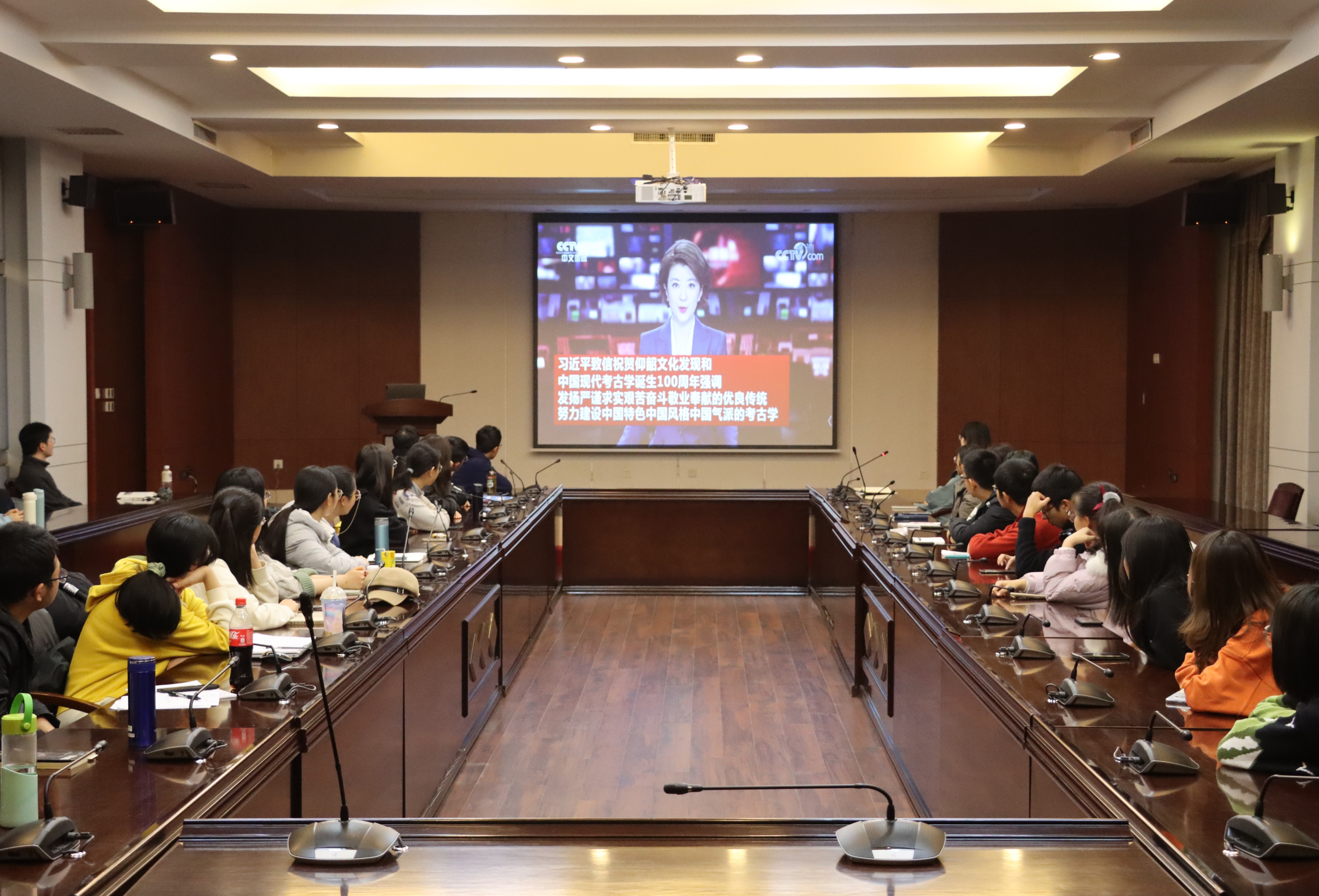 会议伊始,全体与会同学就自己所在的班级和职能部门进行自我介绍,加深了对各组织及其成员的了解。结束后,与会人员一同通过新闻视频重温习近平总书记致仰韶文化发现和中国现代考古学诞生100周年贺信,深入体会考古学在展示中华文明风采、弘扬中华优秀传统文化方面的重要意义,深刻领悟新时代青年考古人肩负的责任与使命。