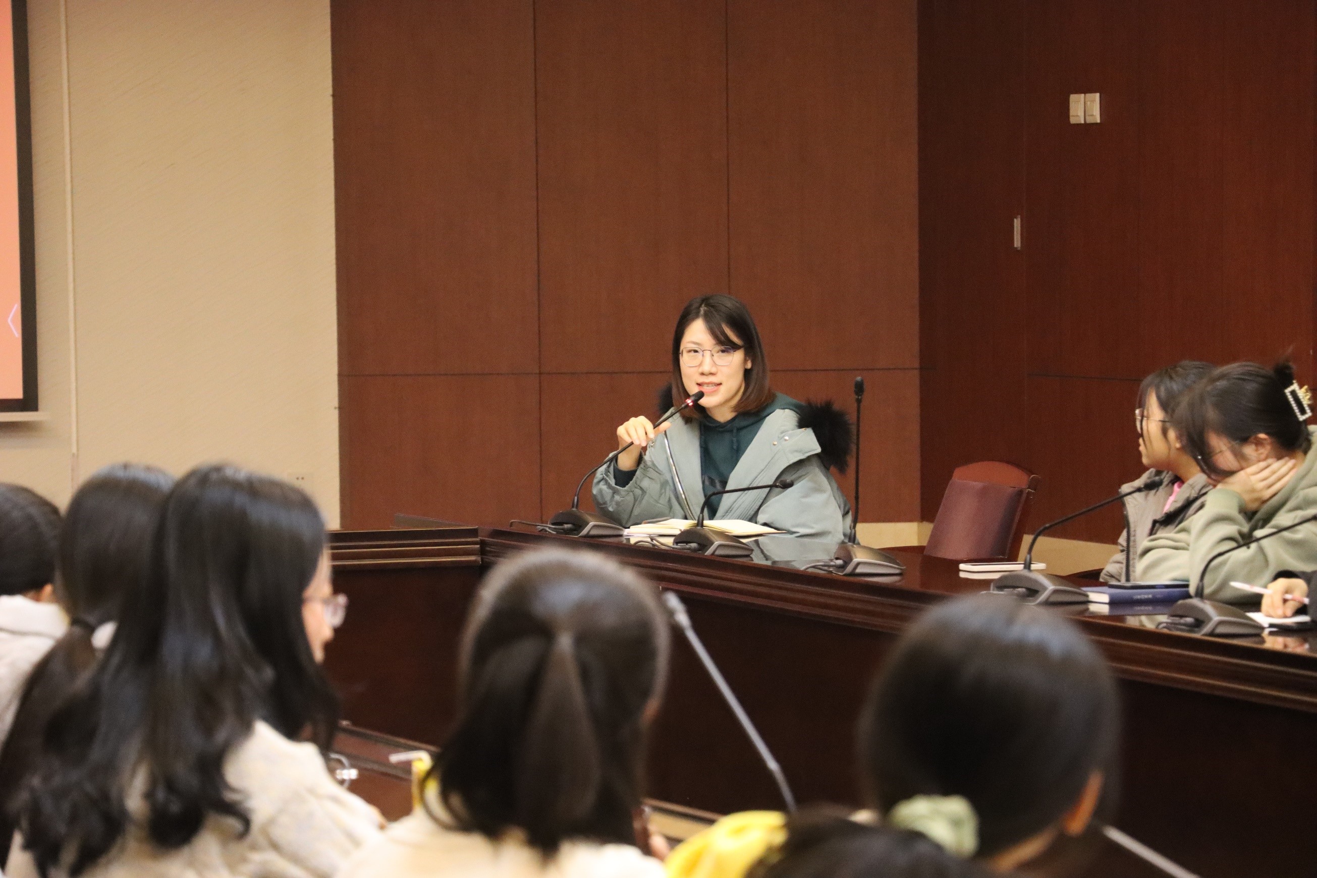 接下来,马老师从十个方面指出了今后团学队伍建设的重点。马老师强调,团学组织应努力打造一种“家文化”,要增强各成员的团队归属感,进而提升团学组织这一整体的凝聚力和向心力。同时,学生干部也应时刻端正态度,积极调整心态,心怀大局意识、服务意识和标杆意识,弘扬创新精神和奋斗精神,胆大心细,努力将学生工作做实,做到学生心坎里。她提出,学生干部应明确自身定位,先学生、后干部,切勿本末倒置,注重专业学习对学生工作的方向指引、视野拓展,并在工作中学习掌握新技能以提升专业素养,实现学生和干部两重身份的相互促进,全面发展。