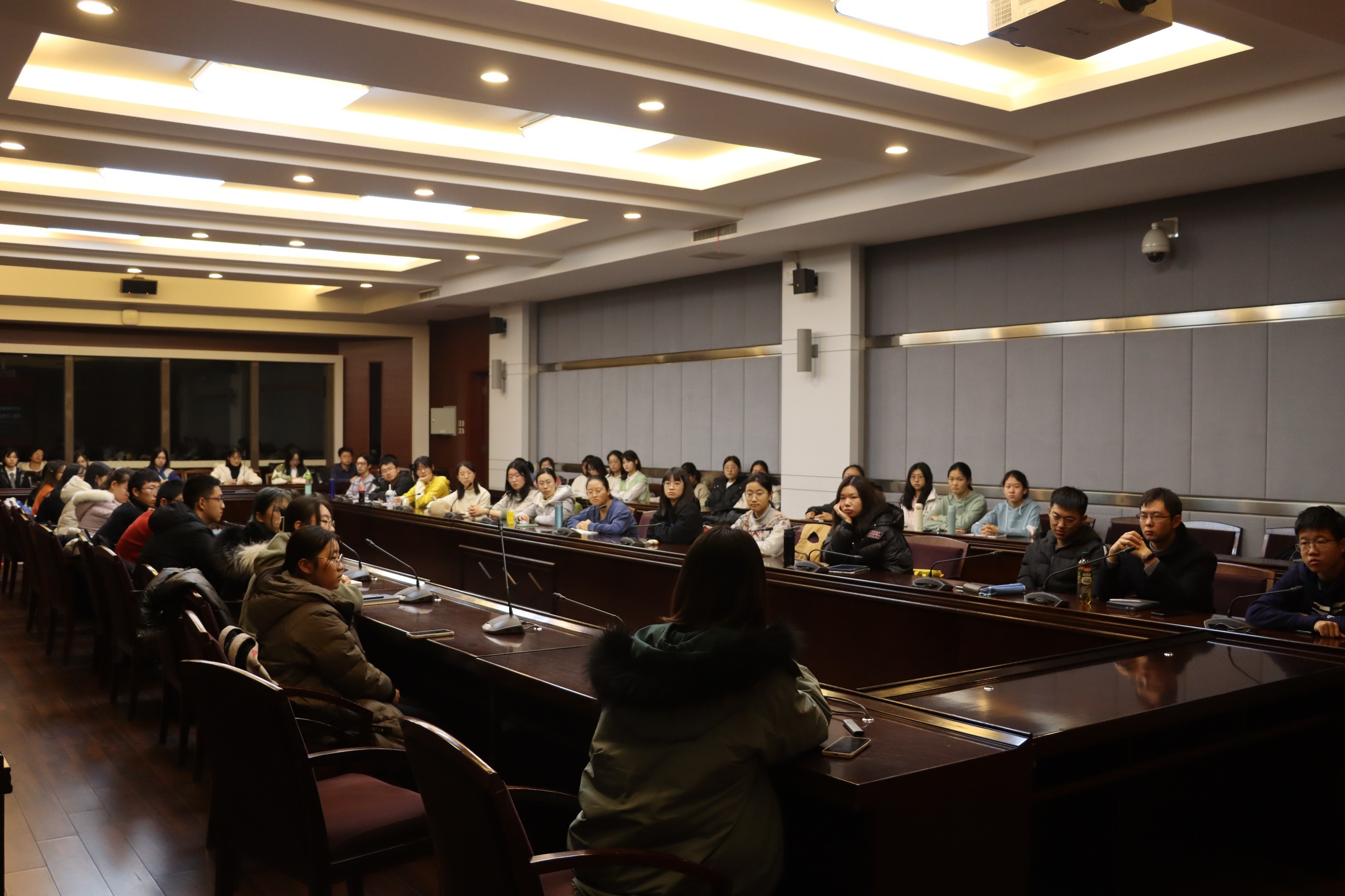 团校于11月15日下午在匡亚明楼第一会议室举办了团学组织座谈会暨第一次学生干部培训会。本次会议由马嘉男老师主持并担任主讲人,辅导员助理杨昌盛及全体大一、大二团学组织同学参加会议。