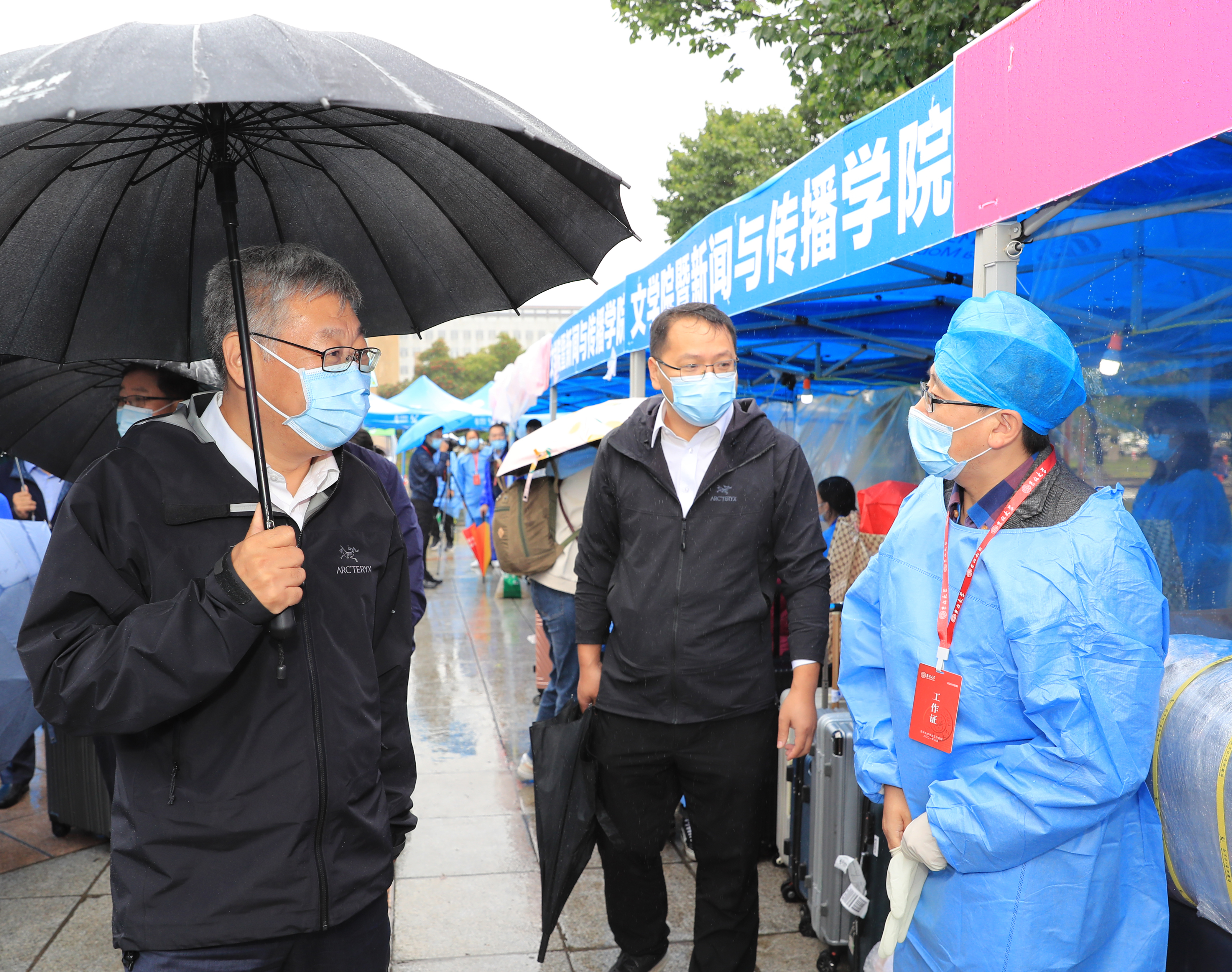 当日下午,学校领导一行莅临迎新现场视察并指导迎新工作。其间,领导们与重庆时时彩