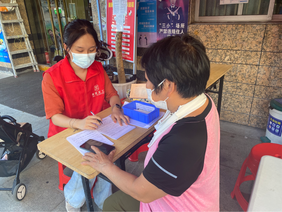 结束交通指挥志愿服务工作后,黎宇菲同学怀着激动的心情来到金排社康中心,在中心负责人的介绍下,她了解了疫苗注射的预约与登记流程。尽管程序并不繁琐,但酷热的工作环境和高强度的工作内容让她感受到了这项工作的艰辛与伟大。在为期数天的工作中,她接连不断地在南方炎炎夏日下忙碌着,持续升高的气温让人头晕目眩。联想到医护工作者们身穿全身密闭的防护服,连续八个小时站在烈日下开展测温及调查工作,就不由得让人肃然起敬。