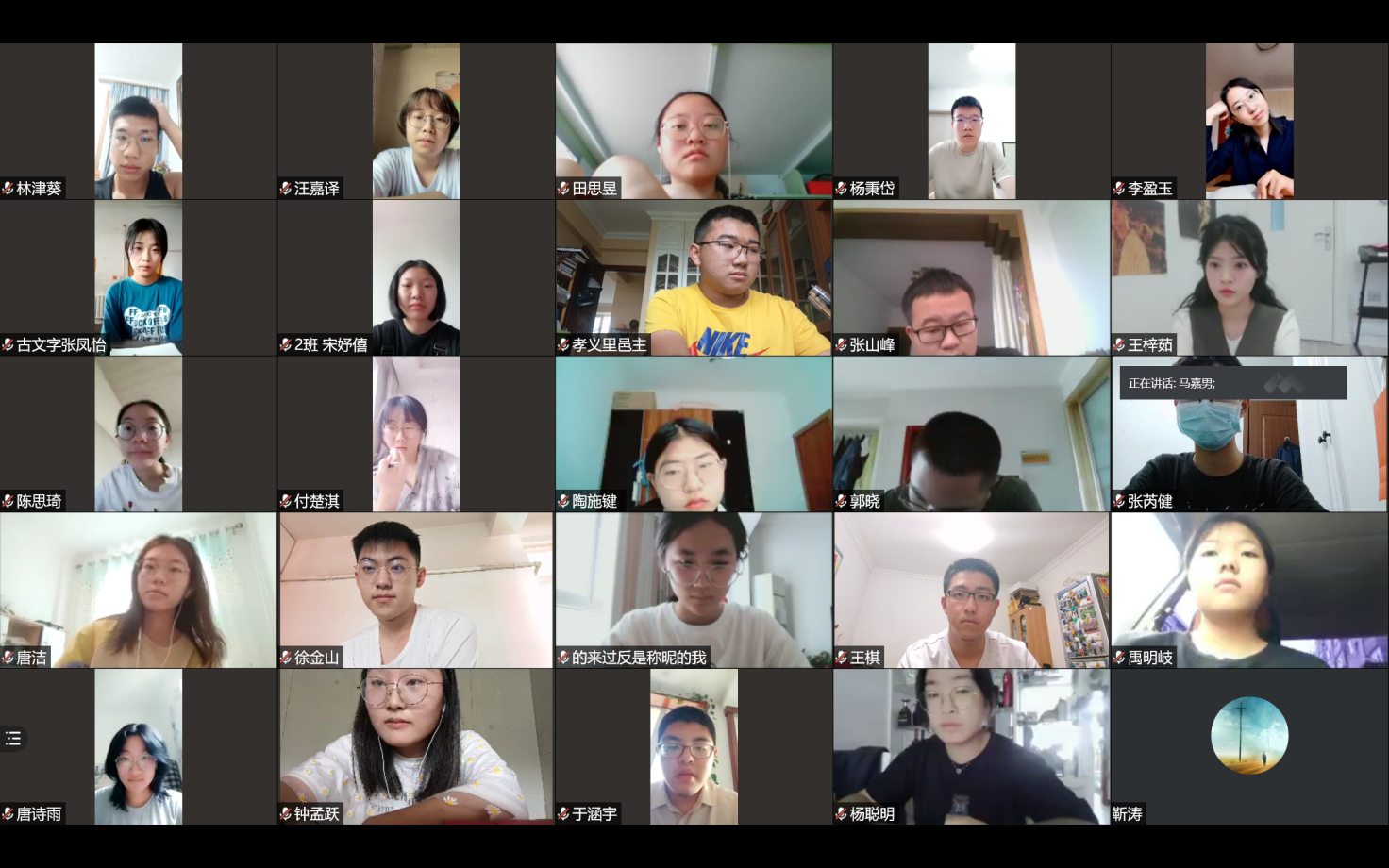 在大家对校园生活有了基本的认识之后,马老师对新生报到过程中的防疫要求、入校后的报到流程,以及入学后的日常管理进行了细致的讲解,并且就同学们所关切的迎新接待、疫情防控等相关问题一一作了充分的解答。期间不时穿插大学生活的趣闻乐事,丰富多彩的学业安排,以及独具特色的学院人才培养体系等内容,让同学们对此满怀憧憬与期冀。