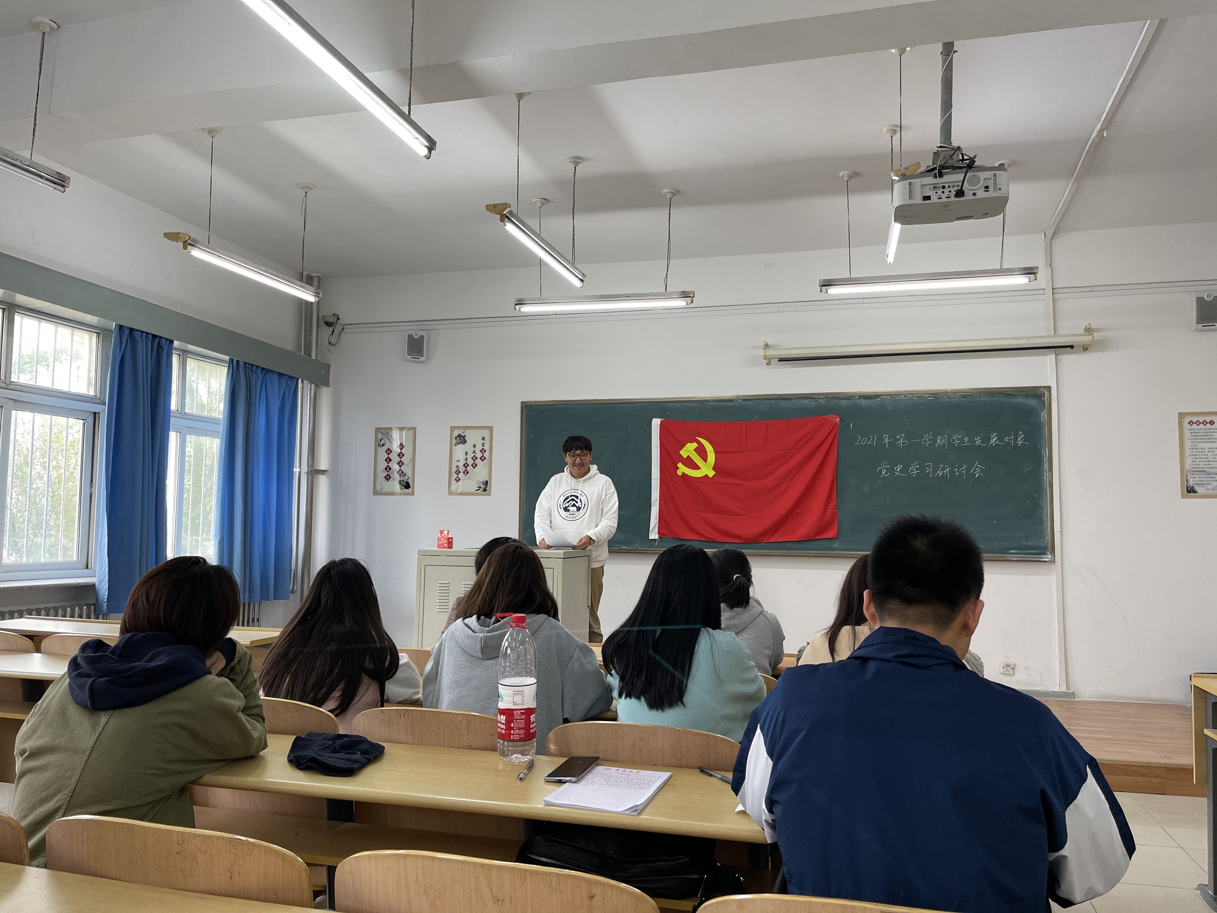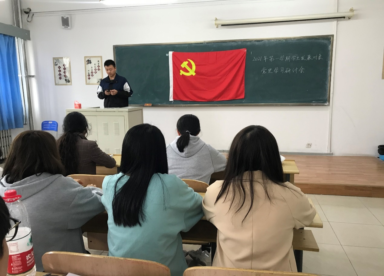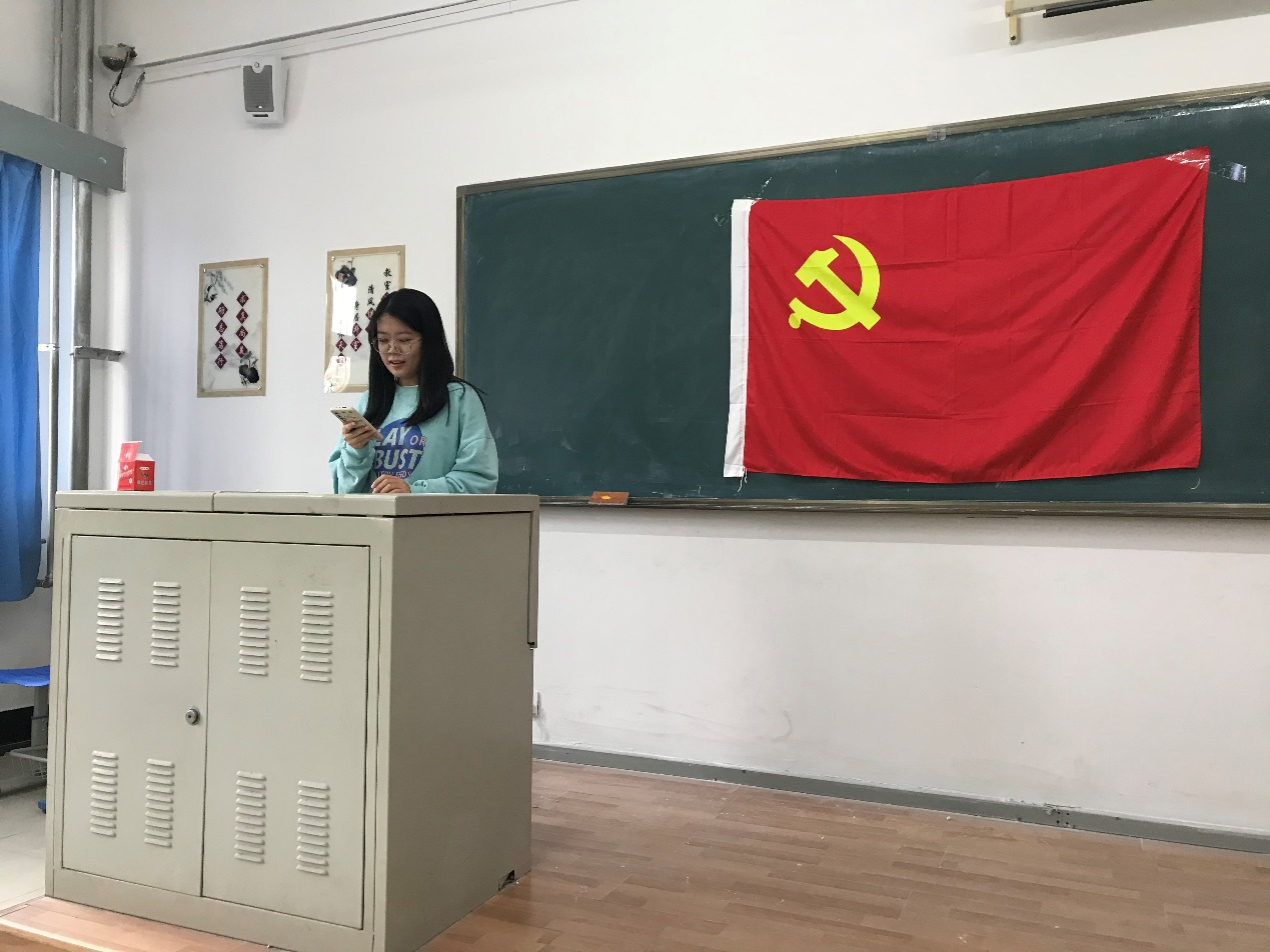 最后,马嘉男老师借此次活动对同学们提出了殷切期望,她告诫同学们学习党史是一个终身的过程,希望同学们能在今后的学习生活中将党史学习作为终身必修课,不断增强对党史的理解;希望同学们不仅要注重文化知识的学习,同时要增强学生工作能力,提高自身综合素质,为成为一名合格的党员做准备;她还强调要定期向党组织提交思想汇报,汇报内容要结合自身实际,以认真负责的态度对待每一份书面材料。马老师的谆谆教导让同学们受益匪浅,不仅加深了同学们注重提升自身综合能力的意识,亦激发了大家高涨的爱党爱国热情。