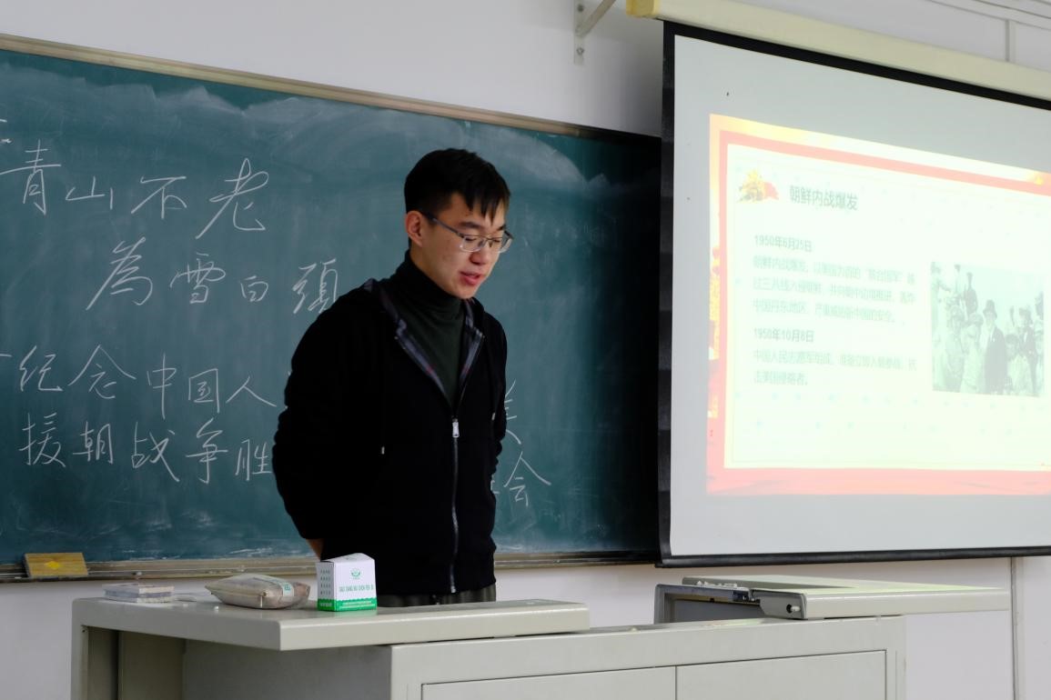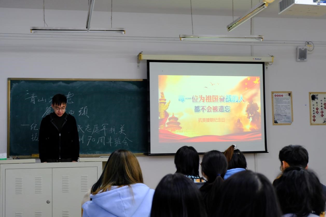 2019级本科生于经信教学楼D110教室开展了主题为“青山不老,为雪白头”纪念中国人民志愿军抗美援朝战争胜利70周年主题班会,班会的主要内容是观看抗美援朝专题纪录片《为了和平》,本次班会由温景超主持,重庆时时彩