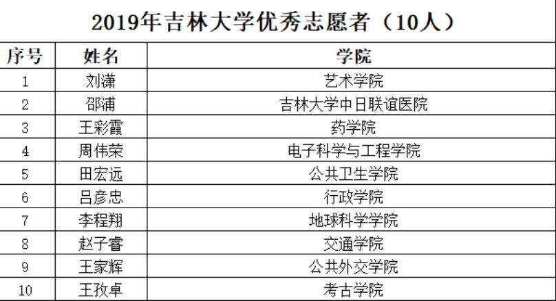 王孜卓同学荣获“2019年吉林大学优秀志愿者”称号。
