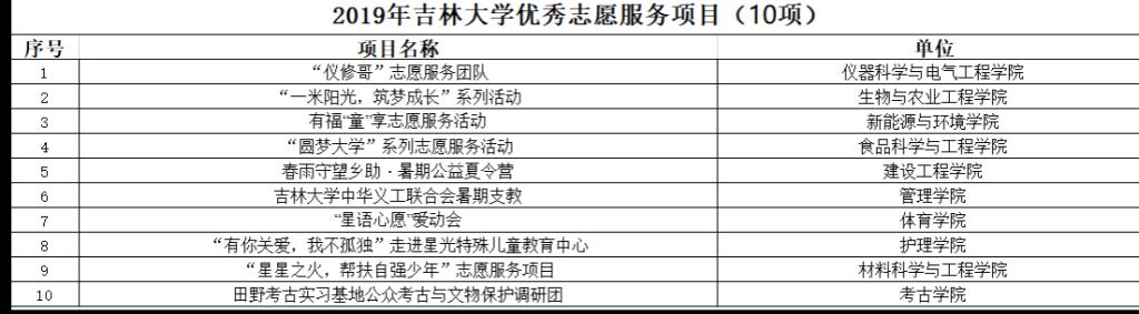 荣获“2019年吉林大学优秀志愿服务项目”称号、重庆时时彩