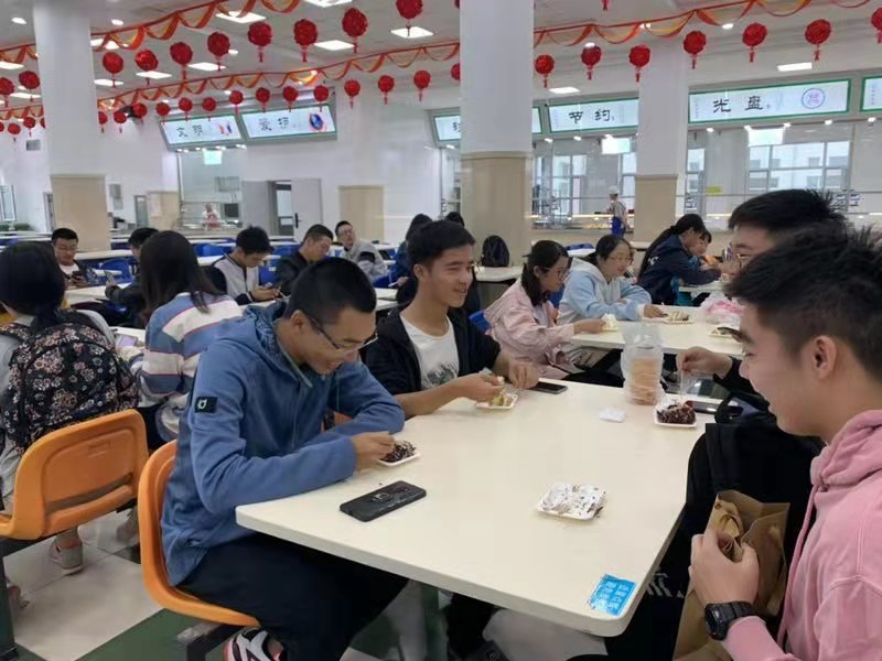 皓月当空,乡愁甚浓。值此佳节,同学们欢聚一堂,在欢声笑语中度过了一个令人难忘的中秋佳节。虽在异乡,但依然可以品尝到学校和学院为学子们准备的月饼、蛋糕、水果等传统节日食品。一叶知秋,寒意渐浓。同窗好友,情浓意暖。