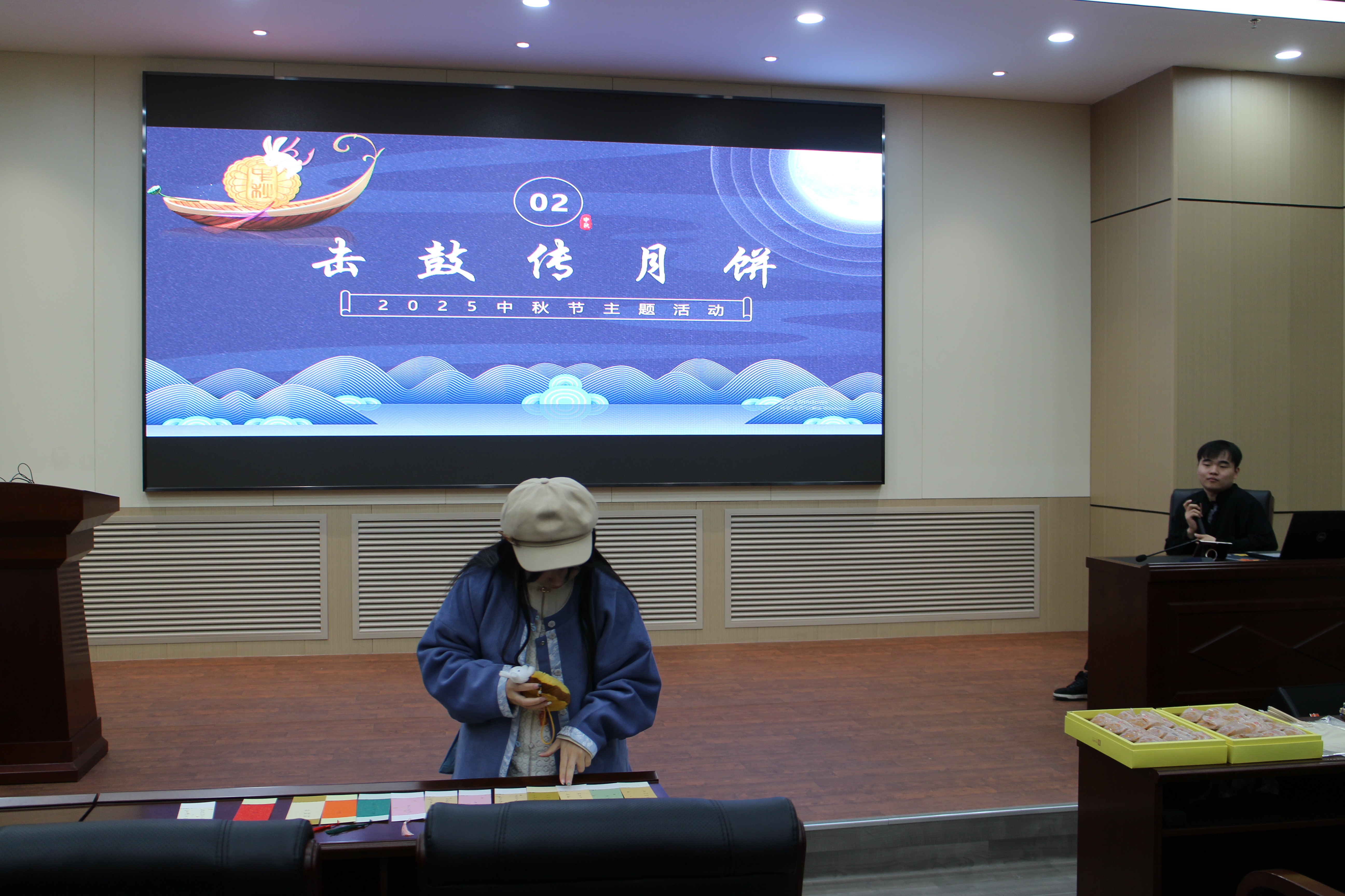 击鼓传月饼环节将活动推向一个小高潮。随着音乐声起,一份象征团圆的月饼玩偶在同学们手中快速传递。节奏暂停时,传递的月饼为同学们带来猜谜机会,也带动起了欢快的活动气氛。