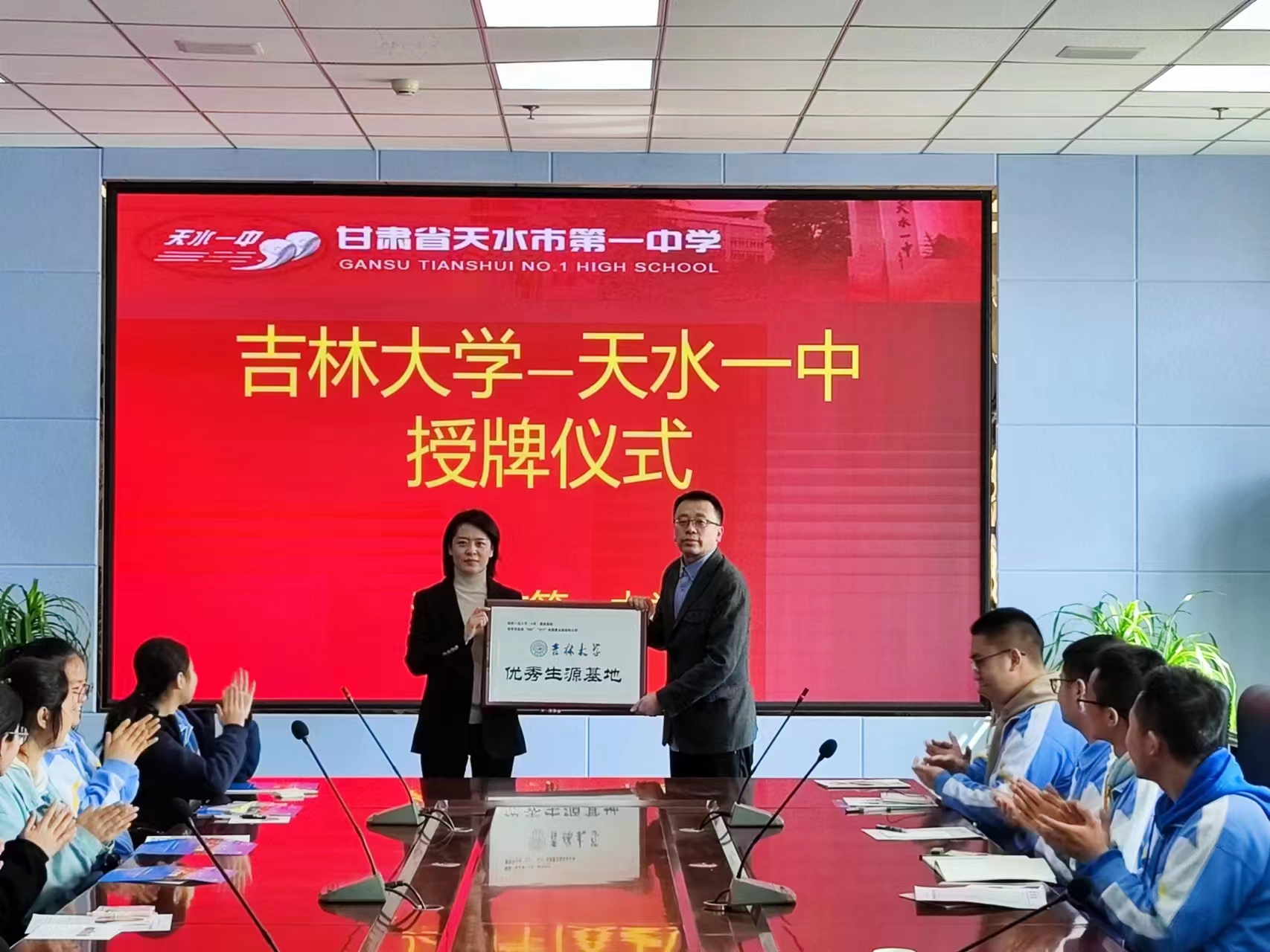 4月25日,吉林大学招生宣讲团先后走进兰州市天水市第一中学、第九中学进行招生宣传工作。25日上午,在天水一中会议室,宣讲团一行与校长助理张小梅、工会主席姚启文、教务科主任韩文亮进行座谈。宣讲团成员侯建峰副书记代表吉林大学对天水一中进行“优秀生源基地”授牌并合影留念。随后,宣讲团面向高三重点班学生进行主题宣讲,宣传材料和纪念品发放,与学生面对面展开深入交流。25日下午,在天水九中会议室,宣讲团与天水市第...